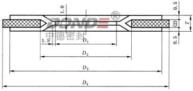 剖切型包覆垫片是采用聚四氟乙烯筒料车削成0.8~1mm厚的环状薄片,从外侧厚度的中心切开,在切口中放入芯材。切口开至距内孔处约1.5~2mm。剖切型包覆垫片的型式结构见图1-4。